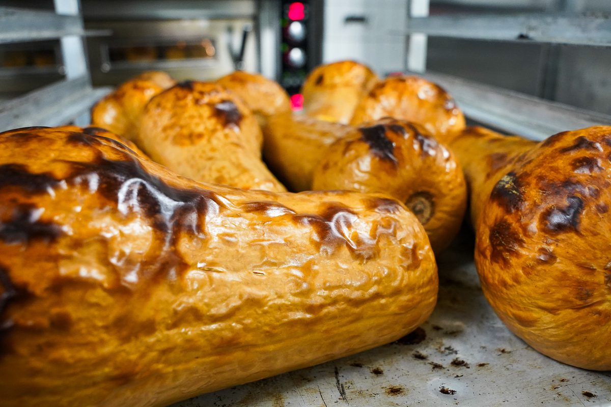 Then, around late August or early September, we get a delivery of ripe pumpkins, and our kitchen team swings into action, de-stemming and roasting every last one of them right in our Snack Bar kitchen.